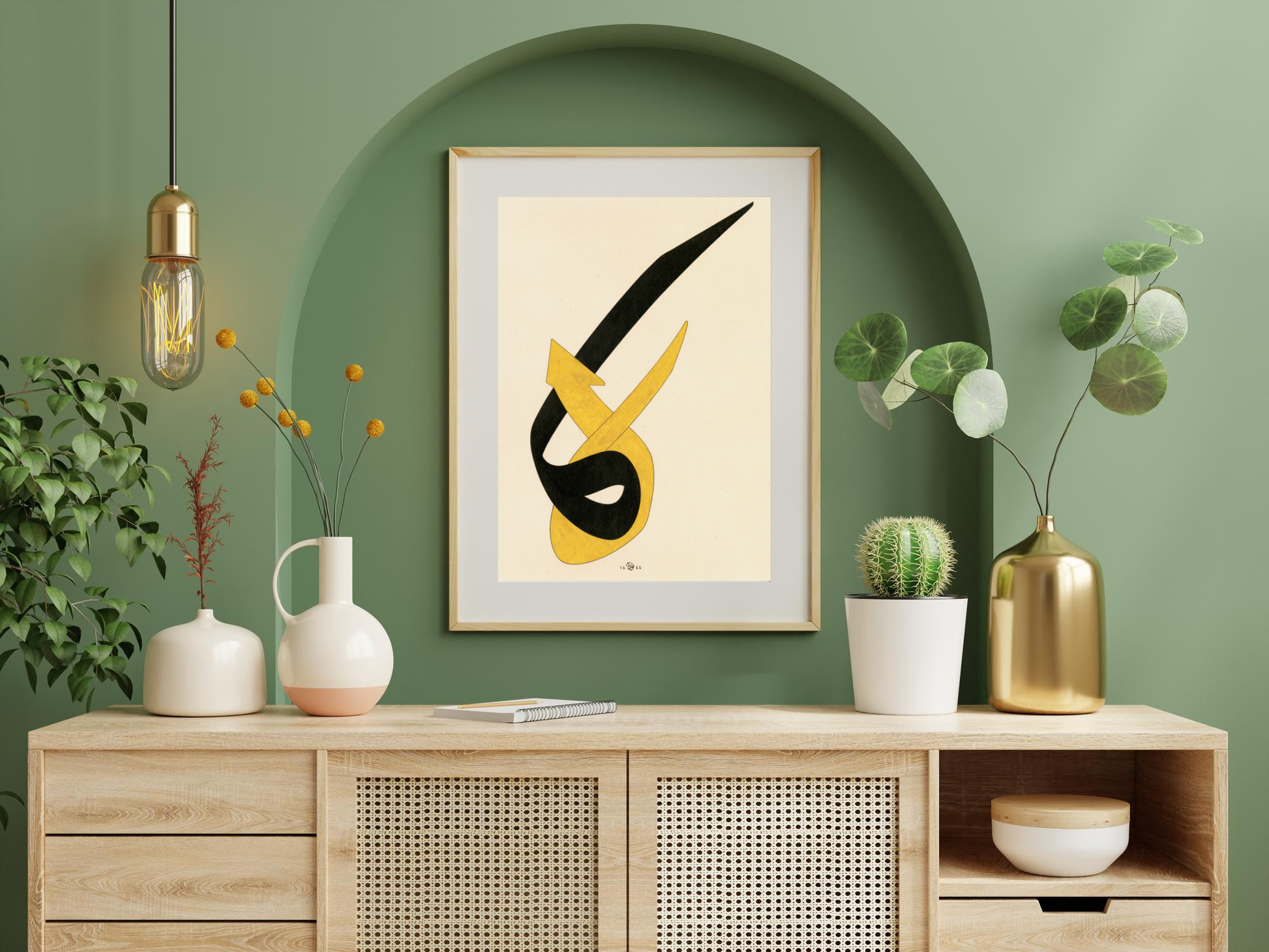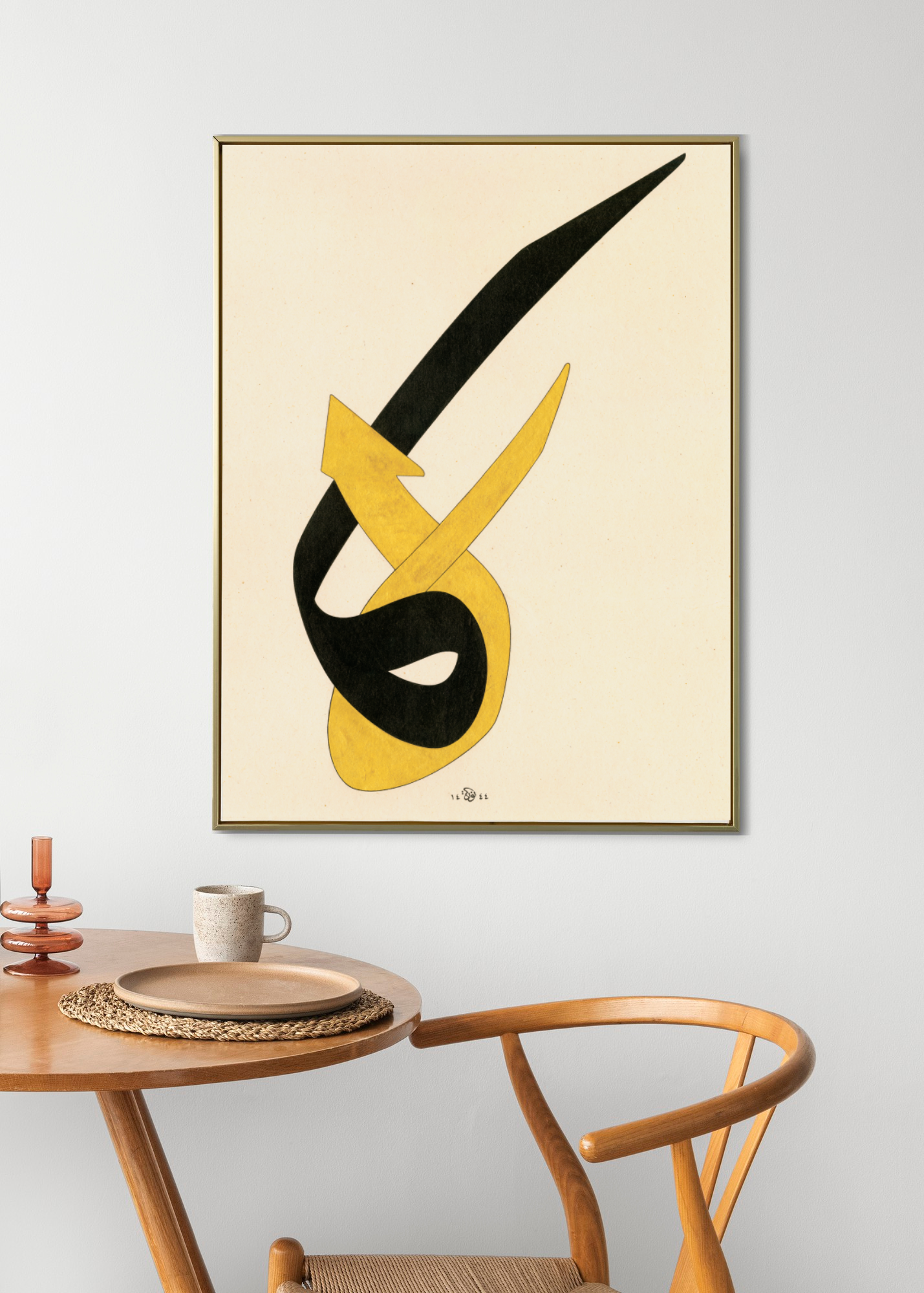 This piece visually represents the two letters that form the Divine Name Huwa, the letters hā’and wāw. Inspired by the opening line of the poem “We were letters, exalted! Not yet uttered,”the artwork explores the transformation of these two letters from their isolated forms into the word Huwa. The letters are depicted as though engaged in a dialogue, taking on different forms and shapes before ultimately merging into the word that signifies the Divine.