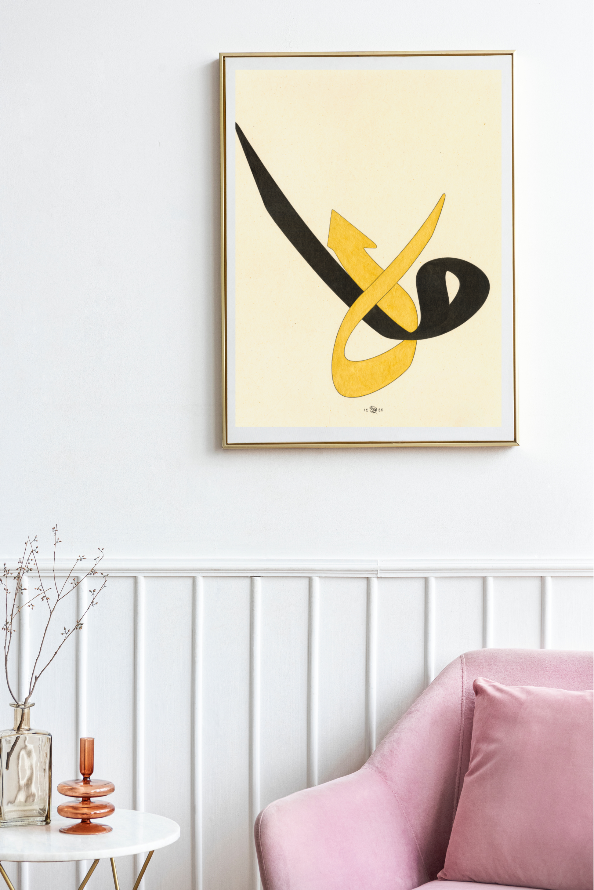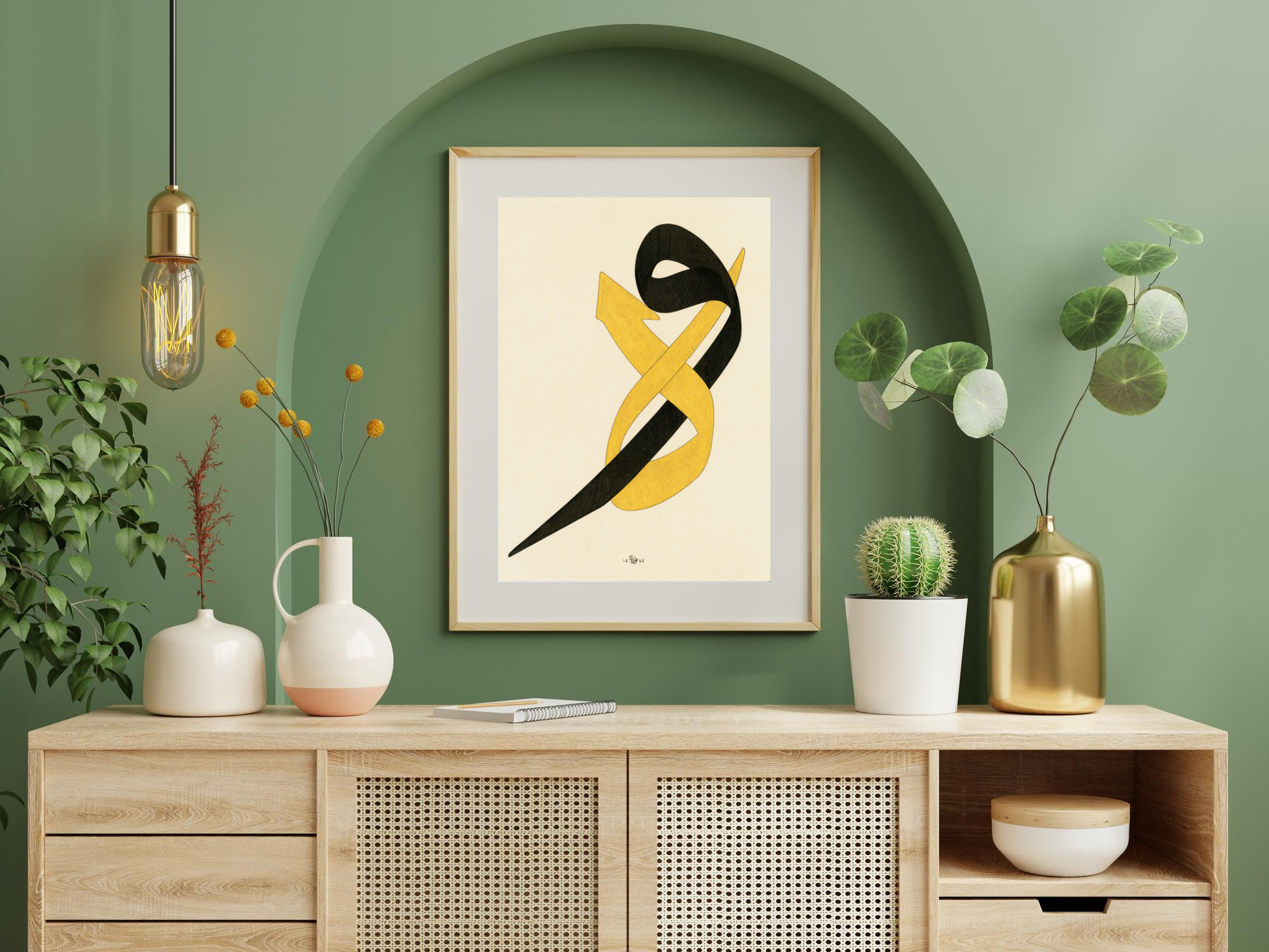 This piece visually represents the two letters that form the Divine Name Huwa, the letters hā’and wāw. Inspired by the opening line of the poem “We were letters, exalted! Not yet uttered,”the artwork explores the transformation of these two letters from their isolated forms into the word Huwa. The letters are depicted as though engaged in a dialogue, taking on different forms and shapes before ultimately merging into the word that signifies the Divine.