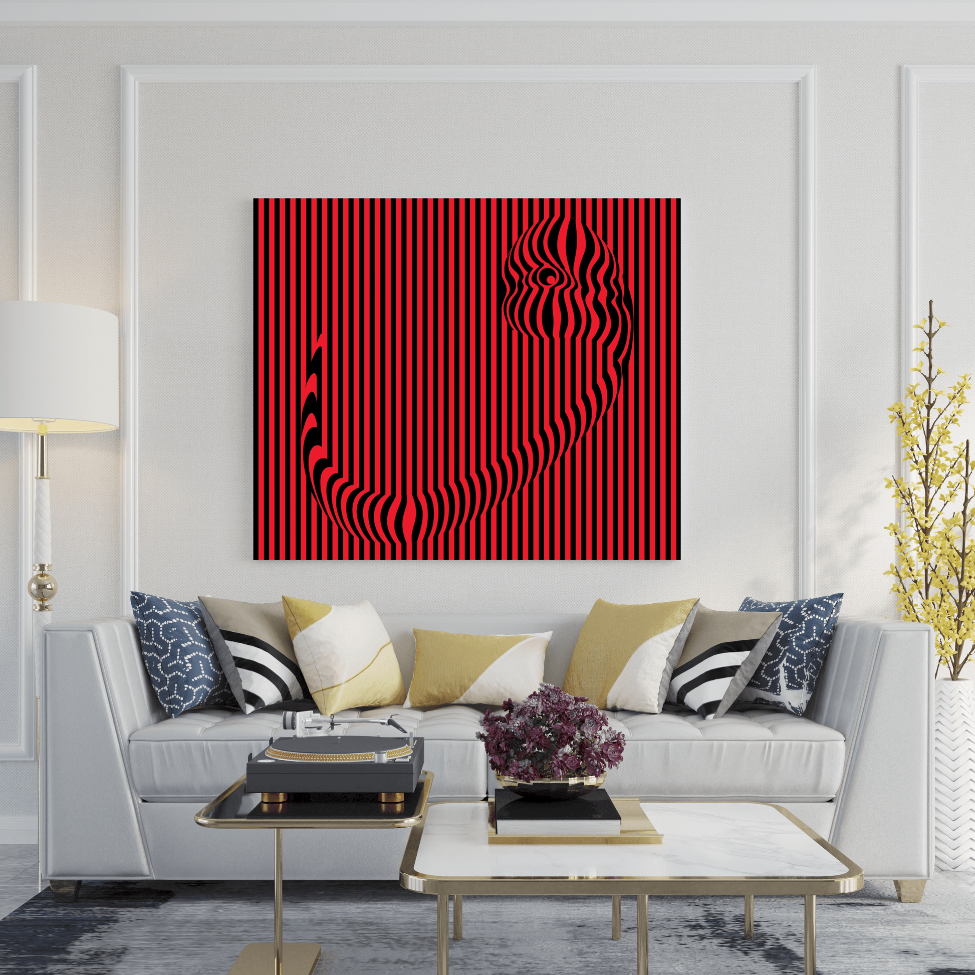The Space of the Observer emerges as an artwork that melds the perceptual games of optical art with a conceptual and mystical profundity, exploring the spatial impact of the gaze. At the intersection of optical illusion and abstract form, the piece presents a dynamic structure that guides the viewer's perception and transforms their relationship with space.