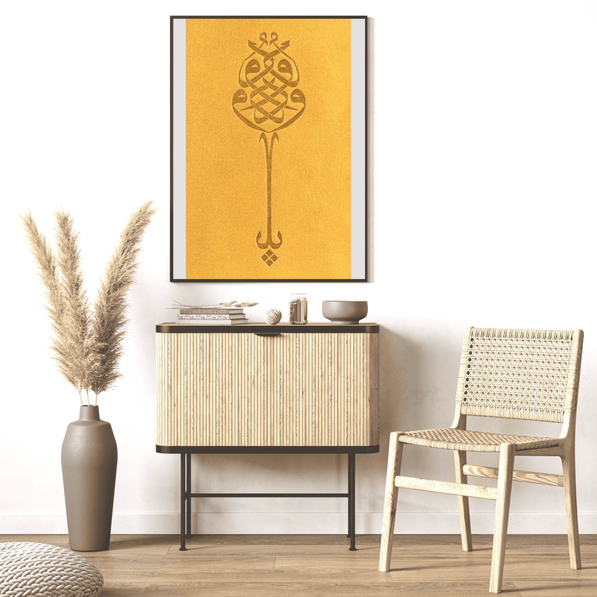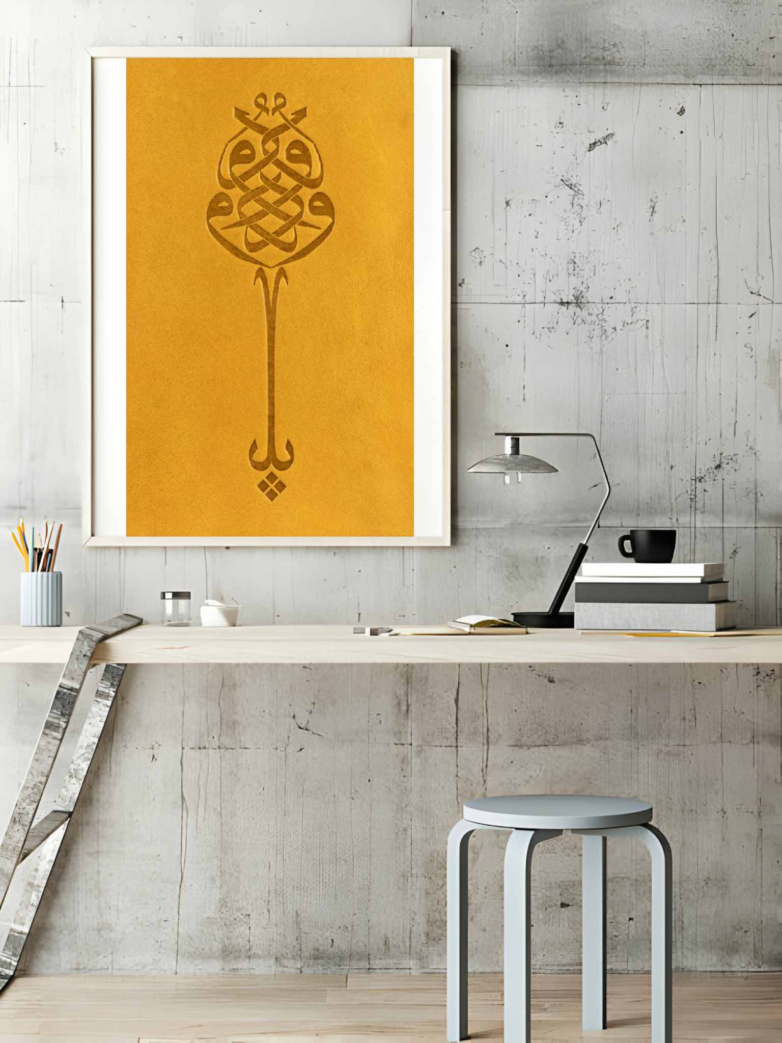 - Karmaşık İslami Tasarım: Arapça hat sanatı, geometrik desenler ve İslami motiflerin yer aldığı sanat eseri, her ayrıntısı mükemmel bir şekilde işlenmiş olarak İslam kültürünün mirasını ve manevi derinliğini yansıtıyor.